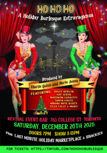 Gather your friends for Torontos sexiest, cheekiest holiday burlesque show. From dancing gingerbread women to dominatrix Mrs. Claus, tantrums, eggnog, whips, Gay Jesus, and more are stripping, shimmying, and high-kicking their way into your festive fantasies.